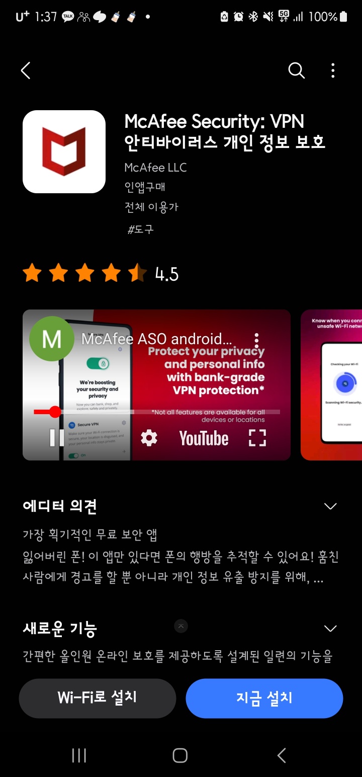 일각에서는 맥아피를 켜두면 앱 설치 시간이 다소 길어어진다는 설도 있습니다. 하지만 안전과 보안은 과할수록 좋다는 말이 있듯이 필자의 생각은 예방 차원에서 보안 프로그램은 필수라고 생각합니다. 그리고 갤럭시 사용 유저라면 갤럭시 디바이스에 최적화된 기본 탑재 케어 프로그램인 McAfee(맥아피)를 사용하시길 권장해드립니다. PC버전 맥아피는 저도 비추천드립니다. 사실 윈도우 쓰신다면 기본 탑재된 윈도우 디펜더만으로도 충분하다고 생각합니다. PC나 모바일 백신 유료버전은 개인적으로 비트디펜더나 노턴, 카스퍼스키 3가지 제품을 추천드립니다.