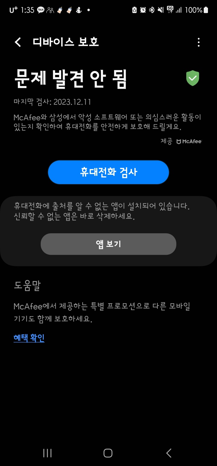 갤럭시 McAfee(맥아피)에 대한 의견